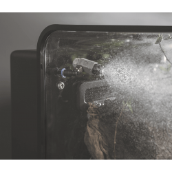 System deszczowy: Wbudowany system deszczowy umożliwia symulację naturalnych opadów deszczu, co jest niezbędne dla wielu gatunków zwierząt tropikalnych. Utrzymywanie wilgotności w tradycyjnym terrarium lub wiwarium odbywa się albo poprzez ręczne zraszanie lub też przez „przykręcanie” nawilżacza lub zewnętrznego systemu zraszania. Ultradźwiękowy zraszacz biOrb EARTH jest wbudowany z własnym dedykowanym wentylatorem i zbiornikiem ukrytym z tyłu. Co więcej, są również podwójne zintegrowane, kierunkowe dysze deszczowe do tworzenia deszczu wewnątrz biOrb EARTH. Ta kombinacja zapewnia najbardziej realistyczną wilgotność i opady w każdym miejscu twojego terrarium