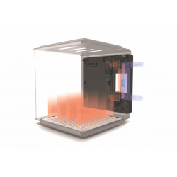 System grzewczy: Wbudowany system grzewczy umożliwia utrzymanie stałej temperatury w terrarium, co jest ważne dla zwierząt zimnokrwistych. Dzieki naszemu terrarium możesz stworzyć prawdziwy trój wymiarowy rozkład temperatuty. Wpodłodze biOrb EARTH, ułożony jest kabel grzewczy który utrzymuje temperaturę gruntu podłoża. Można go tak konfigurować aby tworzyć ciepłe miejsca do wygrzewania się w określonym rogu lub wzdłuż boku. Bezpośrednie ogrzewanie podłoża naśladuje rzeczywisty świat, w którym grunt nagrzewa się wolniej rano i chłodzi wieczorem. Ale to nie wszystko na tylnej ściance zbiornika zamontowano opatentowaną jednostkę kontroli temperatury. Za pomocą pompy ciepła opartej na półprzewodnikowym ogniwie Peltiera i sterowanym wentylatorom, powietrze terrarium jest stale recyrkulowane w zbiorniku – ogrzewane i chłodzone w razie potrzeby. Ta kombinacja elementów grzewczych umożliwia temperatury do 40°C lub do 3°C poniżej temperatury otoczenia. Tworzy również autentyczne środowisko temperatury 3D.