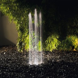 W efekcie możemy uzyskać skaczącą wodę którą wyrzuca pompa na wysokość ok 1,4 m od poziomu posadowienia wylotów dysz fontannowych Water Quintet. Dysze maja możliwość pochylenia na przegubach kulowych dzięki czemu możemy uzyskać strumienie pionowe oraz strumienie tworzące parabole.